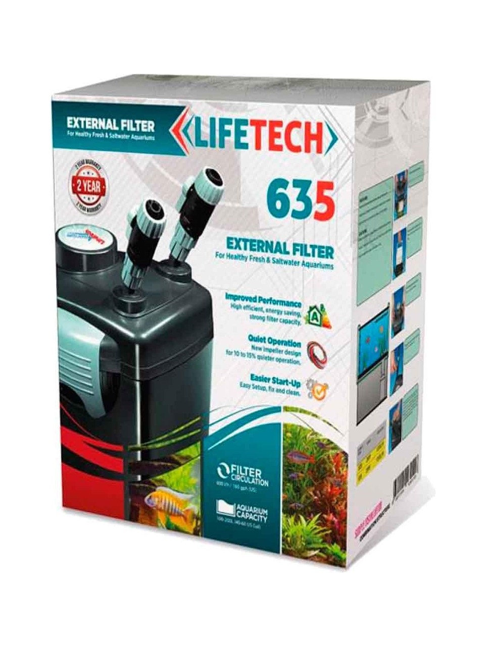 Lifetech Dış Filtre, tatlı su ve deniz akvaryumlarına uygundur. Seramik millidir. Dış filtrenin suyu daha verimli temizleme yapması için içindeki seramik, karbon ve elyaf haznelerinin tam dolu olması gerekmektedir. Kutu içerisinde seramik, karbon, elyaf ve sünger hazır olarak bulunmaktadır.